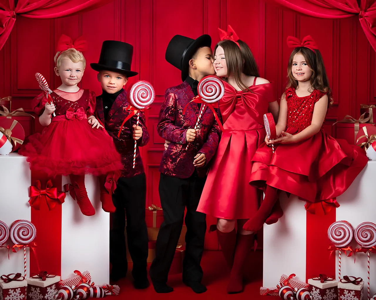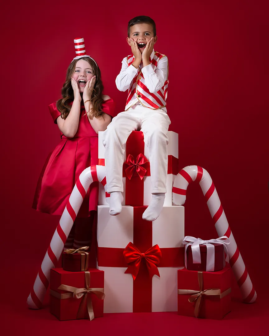 These sessions take place in my Dartford studio, with a styled Christmas set that’s created fresh each season. It’s festive, timeless, and all about your children’s personalities – with plenty of room for cuddles and family moments too!
