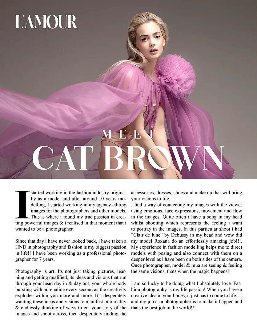 Editorial photography is where storytelling and style meet. It’s about creating images that are expressive, intentional, full of atmosphere – and belong in print.